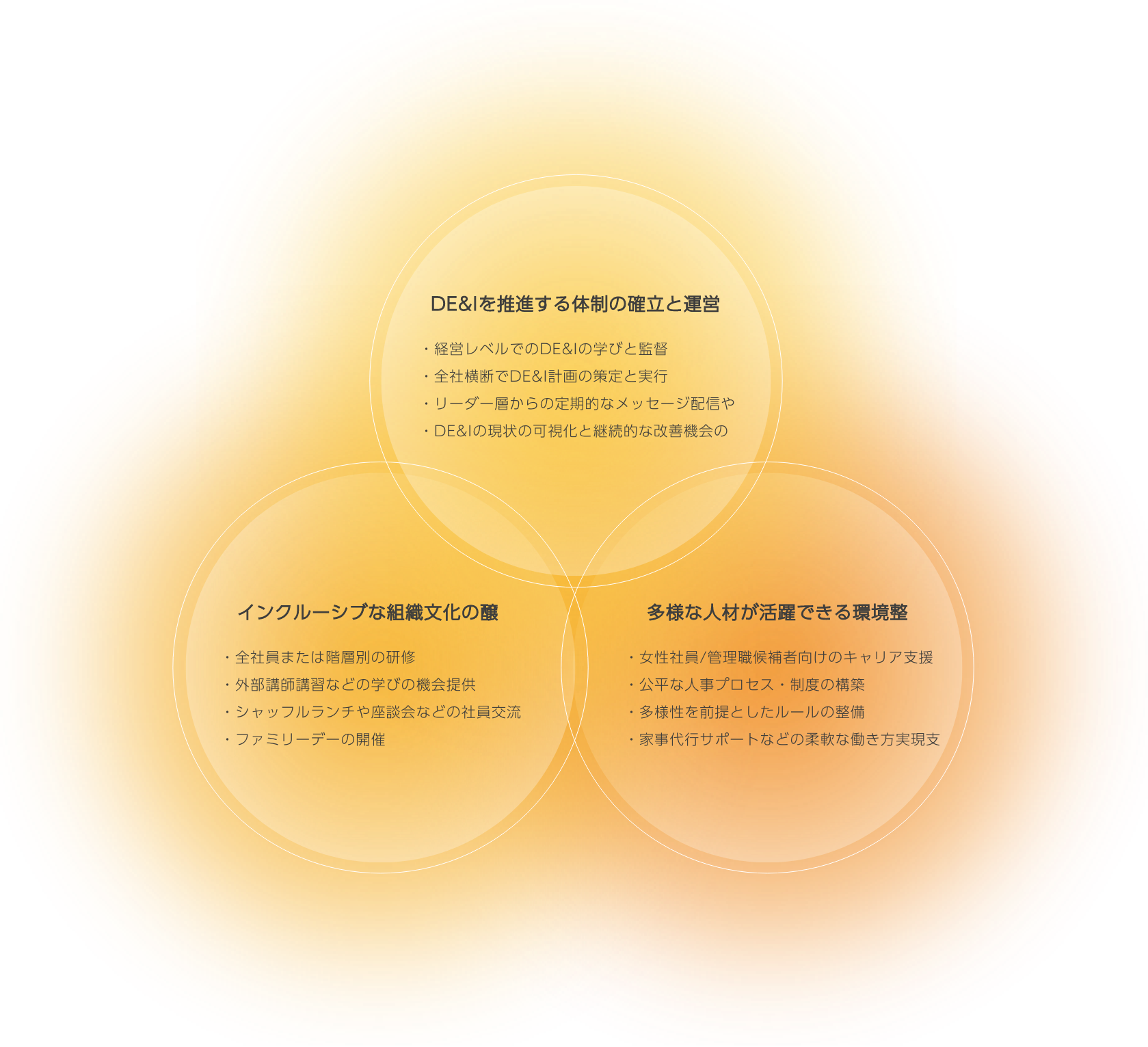 私たちのバリューの一つである「エクセレントピープル」が示すように、互いを尊重し、高め合う文化は私たちの誇りです。この文化をさらに発展させ、すべての社員が「ゆたかな人生のきっかけ」をここで見つけられるよう、DE&Iの推進に全社一丸となって取り組んでまいります。